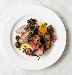 March 2025 Monthly Recipe / Beef carpaccio with raw artichokes, salsa verde & horseradish cream